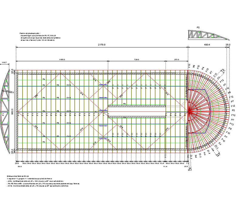 Fermette cintrée, grande portée, mixte avec charpente traditionnelle, coyaux, combles habitables...